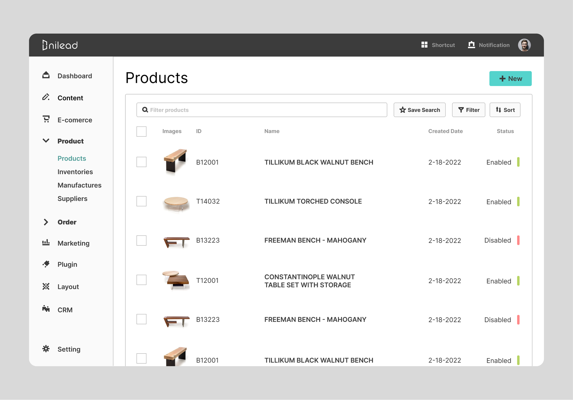 We studied competitor platforms such as Shopify, WordPress, and Workflow to gather insights and inform the design of a CRM tailored for Nilead.